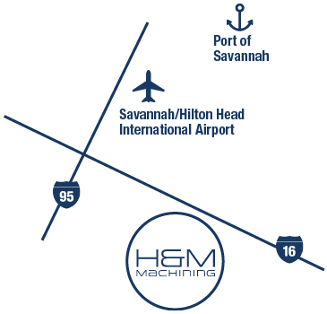 H&M Machining is conveniently located in the Chatham Center. We occupy a 10,000 square foot, climate-controlled facility with a loading dock. With our shop off I-16 and Chatham Parkway, we are only minutes from downtown Savannah, the Georgia Port and The Savannah/Hilton Head International Airport. This means that shipping parts or materials to or from our shop is a breeze.